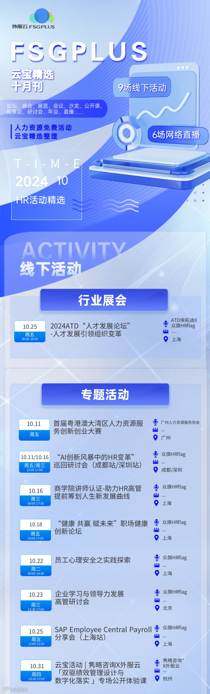 云宝整理了10月全国(部分)人力资源行业活动日期及举办地点、预计人数,供各位企业HR参考。