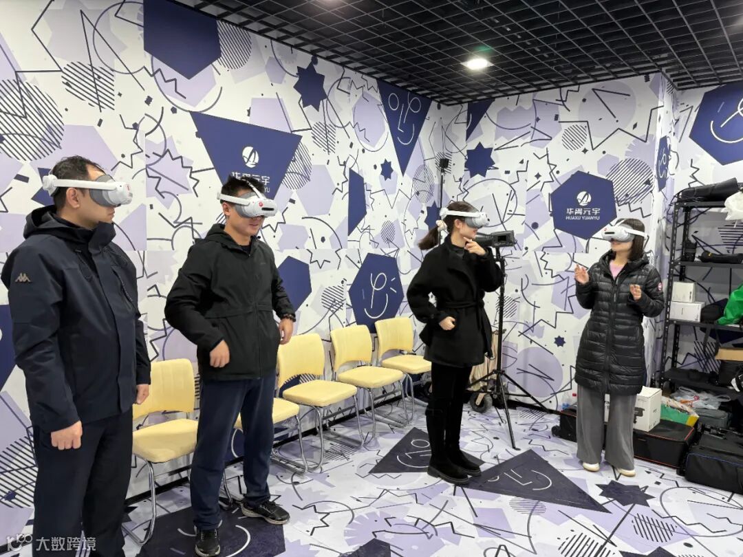 调研组一行率先参观了华胥元宇企业展厅与科研成果展区,近距离观摩虚拟现实(VR)、人工智能等核心技术的研发应用成果。在互动体验环节,众人亲身参与了公司标杆项目——西安兵马俑多人 VR 实景体验,通过高度还原的历史场景、流畅的交互设计与逼真的感官沉浸感,直观感受了企业在VR技术落地应用中的硬核实力,对其将前沿科技与数字文旅、展陈等场景深度融合的创新模式给予高度认可。