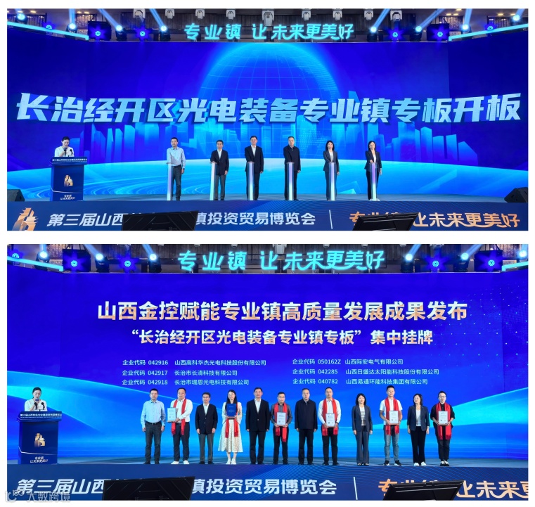 17日下午,“长治经开区光电装备专业镇专板”正式开板,省工信厅一级巡视员李志松、长治市副市长呼亚民、省财政厅二级巡视员李海翔、山西证监局副局长鲁家焱、山西金控集团董事会秘书郭彪、省委金融办监管三处(普惠金融处)副处长郝亚琪出席开板仪式,为“长治经开区光电装备专业镇专板”揭牌,并为6家入板企业授牌。这标志着山西金控集团在利用区域性股权市场深耕专业镇服务上取得新突破,继在晋中市设立太谷玛钢专业镇专板、吕梁市设立汾阳杏花村汾酒专业镇专板之后,在长治市设立的我省第三个专业镇专板,也是山西金控集团充分发挥山西股权交易中心上市培育作用,构建“资本+产业”精准对接机制的服务实践。