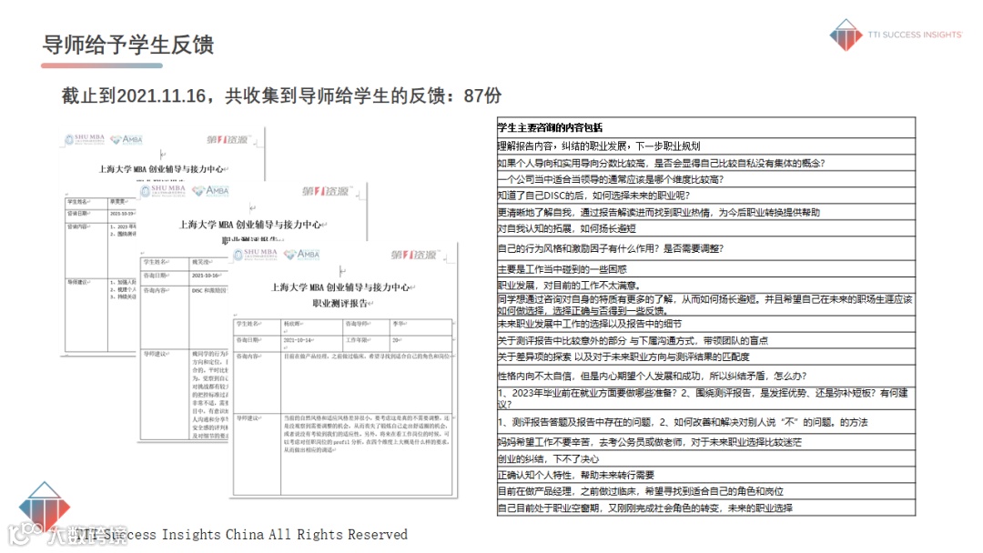2021年9月-11月,TTI联合中国领先人力资源媒体“第一资源”,共同参与了上海大学MBA学生自我认知测评及报告解读公益项目。