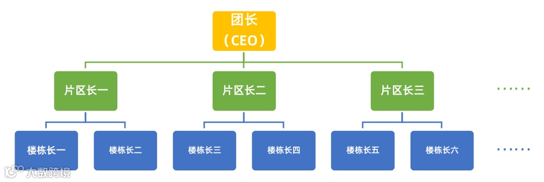 例如整个小区100+栋楼,先根据楼栋地理位置,分为多个片区,设片区长;每个片区包含相邻或相近的楼栋,每个楼栋设楼栋长。而团长是理所当然的CEO,专门负责在门口统筹管理。