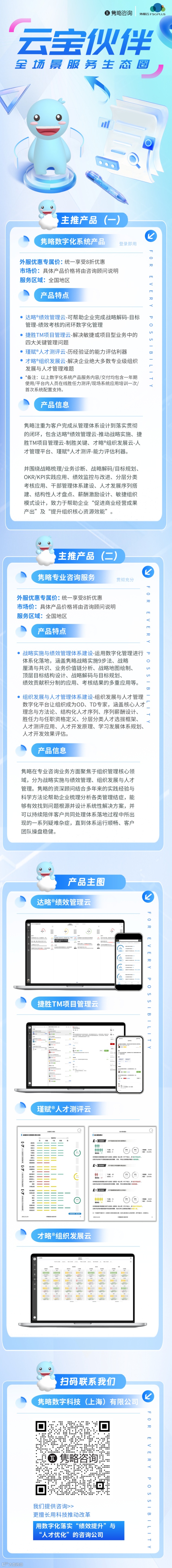 隽略数字科技(上海)有限公司(简称“隽略咨询”),成立于2016年,是一家以数字化技术为创新竞争力的组织管理咨询公司。公司聚焦于绩效与人才两大专业管理领域,通过“咨询+系统+陪跑”的交付组合,帮助客户完成管理体系的设计搭建及日常数字化应用,真正将“绩效提升”与“人才优化”落实到位。