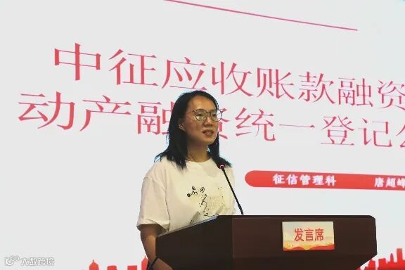 人民银行长治市分行征信管理科科员唐超峰介绍“中征应收账款融资服务平台”和“动产融资统一登记公示系统”。