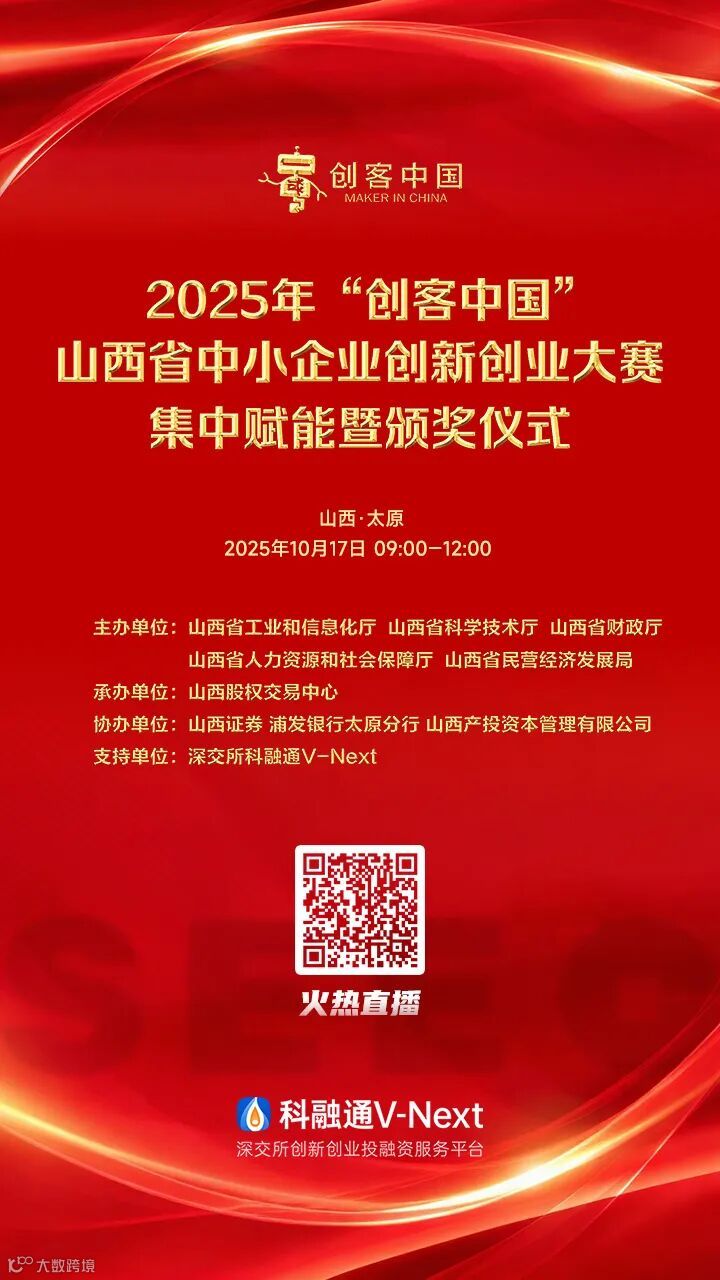 直播链接 | 2025年“创客中国”山西省中小企业创新创业大赛集中赋能暨颁奖仪式