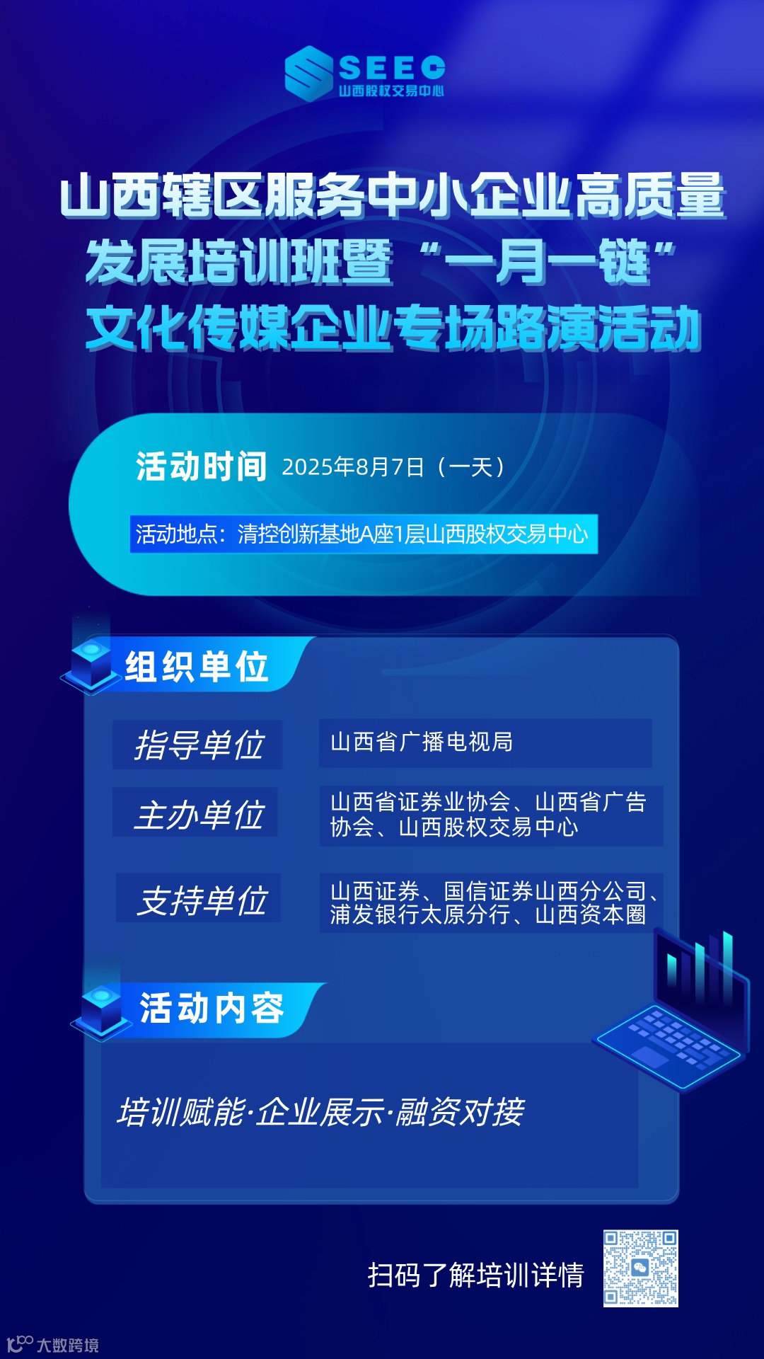 【活动通知】山西辖区服务中小企业高质量发展培训班暨“一月一链”文化传媒企业专场路演活动