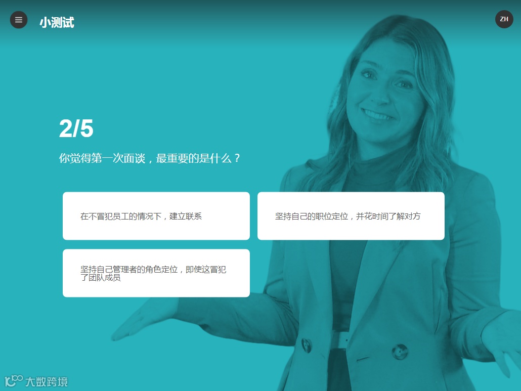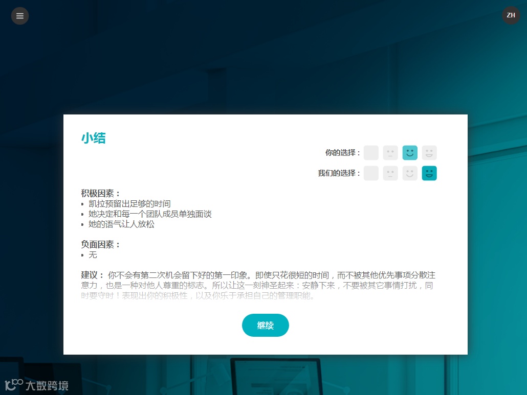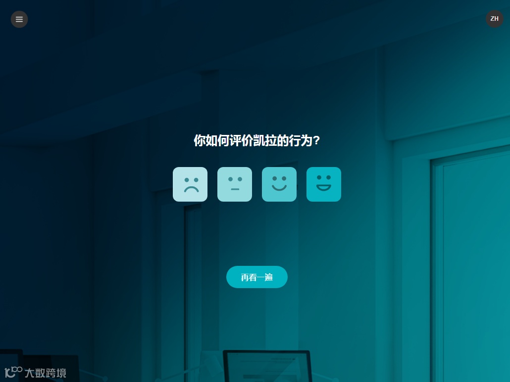 当然,作为培训,其中设计了许多互动,比如,剧情推进过程中,学习者需要对凯拉的某一个管理行为作出评价。