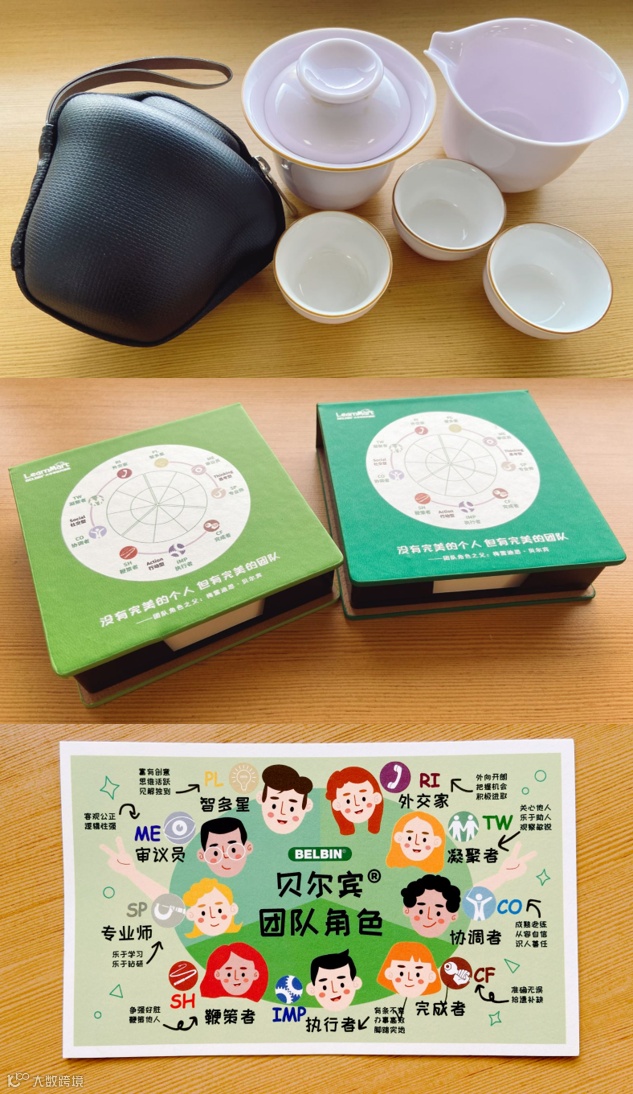 (奖品包括:贝尔宾中国定制茶具组、贝尔宾轮盘图桌上便签盒、贝尔宾团队角色卡通明信片、贝尔宾团队角色帆布袋)
