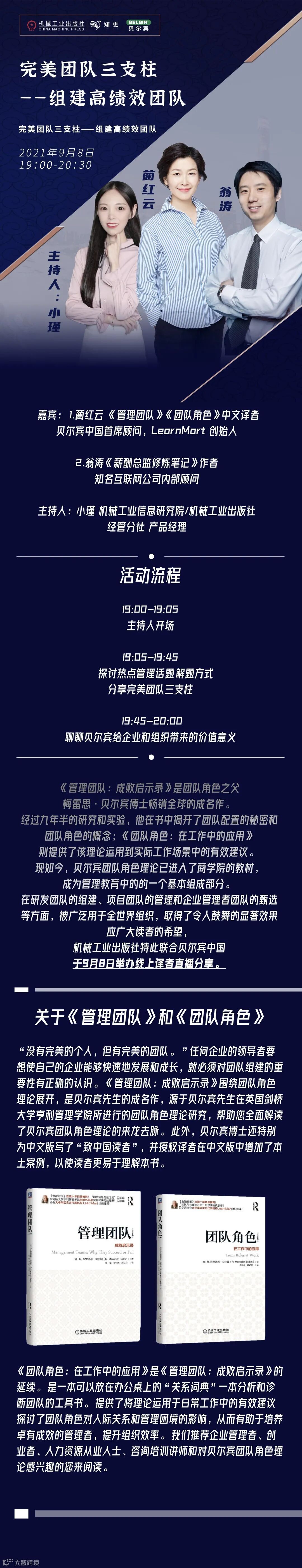 通过机械工业出版社直播渠道购买《管理团队:成败启示录》或《团队角色:在工作中的应用》再另外下单加购《贝尔宾打造高绩效团队》线上微课