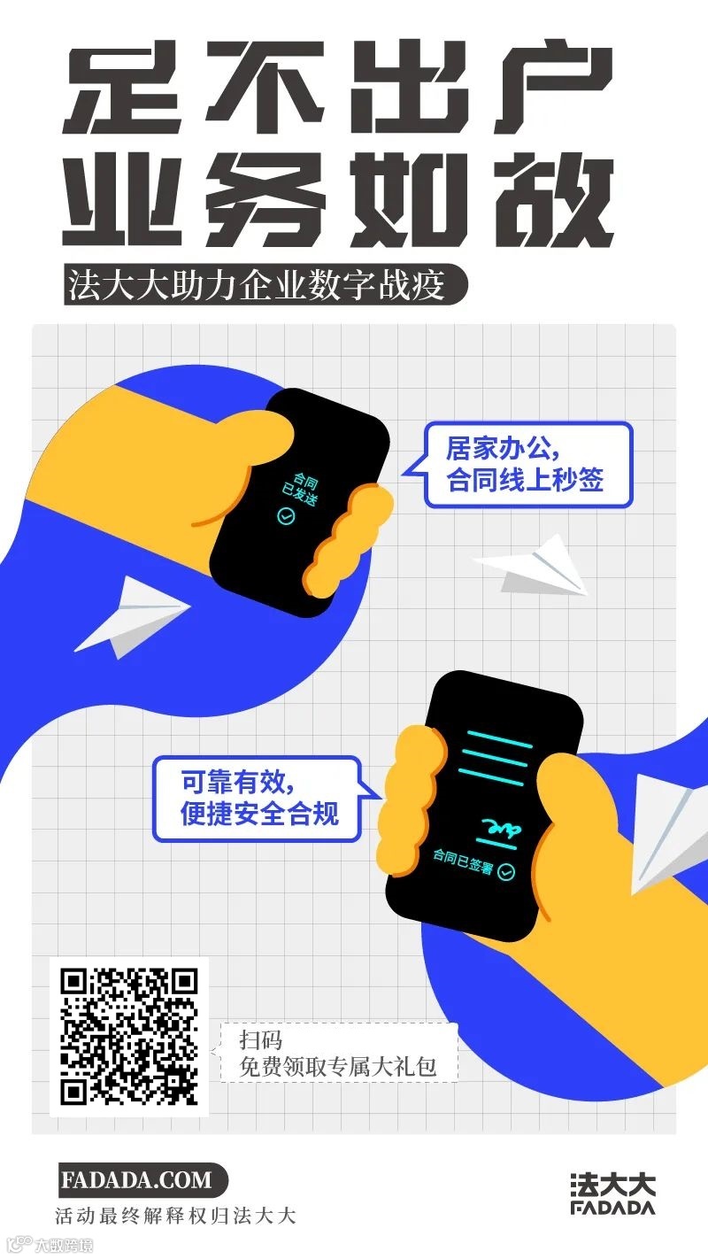 为保障各行业在疫情期间维持正常经营运作,为各行业纾困,法大大面向上海企业用户推出2022年度数字抗疫大礼包,提供为期1个月的免费电子合同套餐(内含500份电子合同签署权益),助力企业足不出户,业务如故,让您居家办公,合同线上秒签!