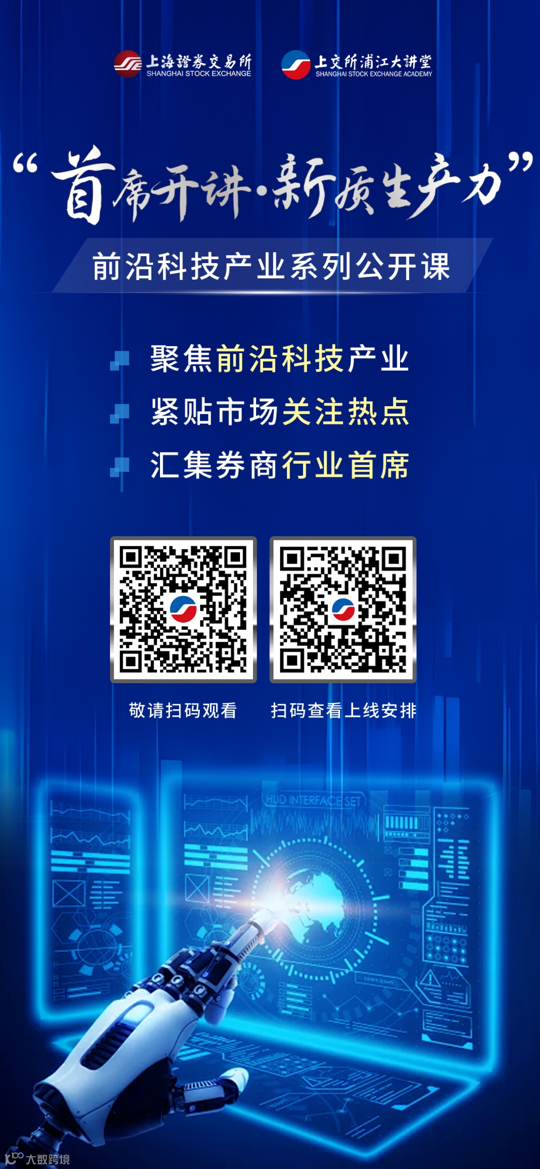 为深入贯彻落实《中共中央关于进一步全面深化改革、推进中国式现代化的决定》《国务院关于加强监管防范风险推动资本市场高质量发展的若干意见》相关要求,更好服务科技创新和新质生产力发展,上海证券交易所在“浦江大讲堂”线上学习平台推出“首席开讲·新质生产力”前沿科技产业系列公开课。现将相关事项通知如下。