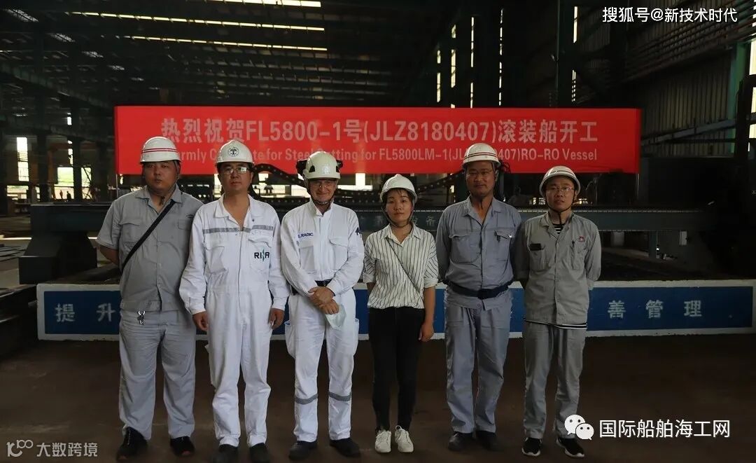 6月8日,招商局金陵船舶(南京)有限公司船厂为意大利Grimaldi集团旗下的芬兰Finnlines Plc公司建造的装脱硫洗涤塔和压载水系统的绿色环保船5800米车道货物滚装船正式开工。