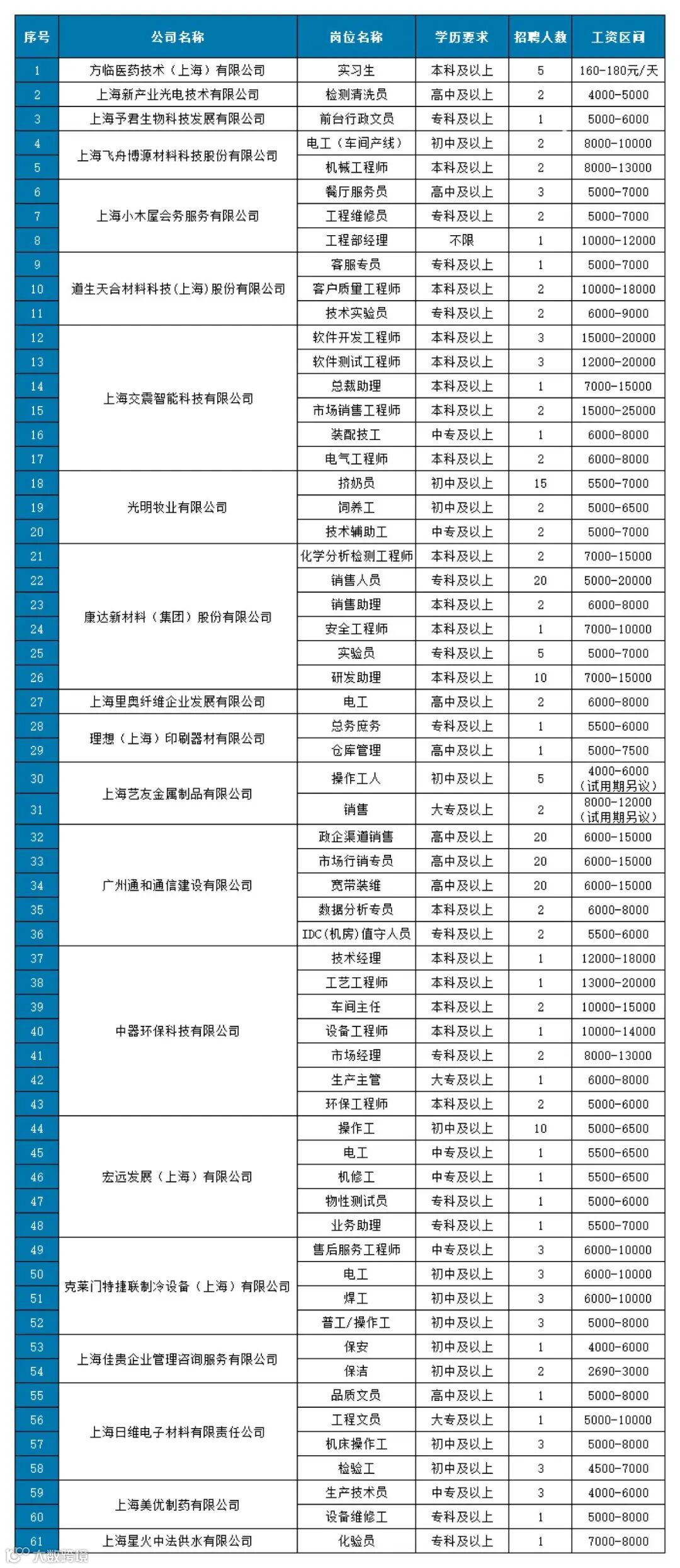 工程部经理、工程师、车间主任、研发助理、销售人员、文员、检验员、电工、钳工、技术实验员、宽带装维、实习生、操作工等。