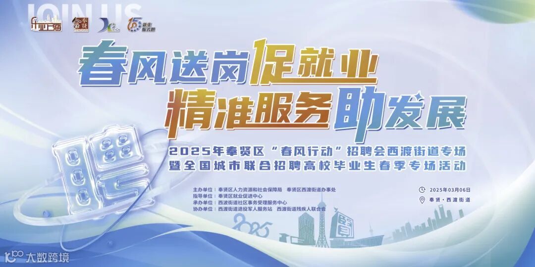 为满足广大求职者的就业意愿和企业的用工需求,切实促进西渡街道辖区内的就业和创业工作,西渡街道将于3月6日(周四)上午9:00-11:00时在连城商业广场举办“春风送岗促就业 精准服务助发展”—2025年奉贤区“春风行动”招聘会西渡街道专场暨全国城市联合招聘高校毕业生春季专场活动,为求职者和企业搭建一个交流平台,实现面对面双向对接。