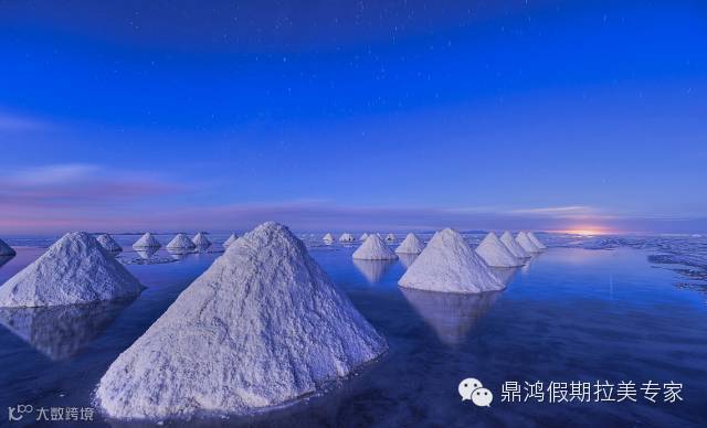 早餐后,稍事休息,乘机前往乌尤尼盐湖,抵达后开车前往盐湖,乌尤尼盐湖面积有10500平方公里。途经墓地火车参观,之后我们将沿着“盐湖眼”的线路参观。傍晚十分,我们坐在盐湖边缘观看绚丽的难以置信的日落奇观。