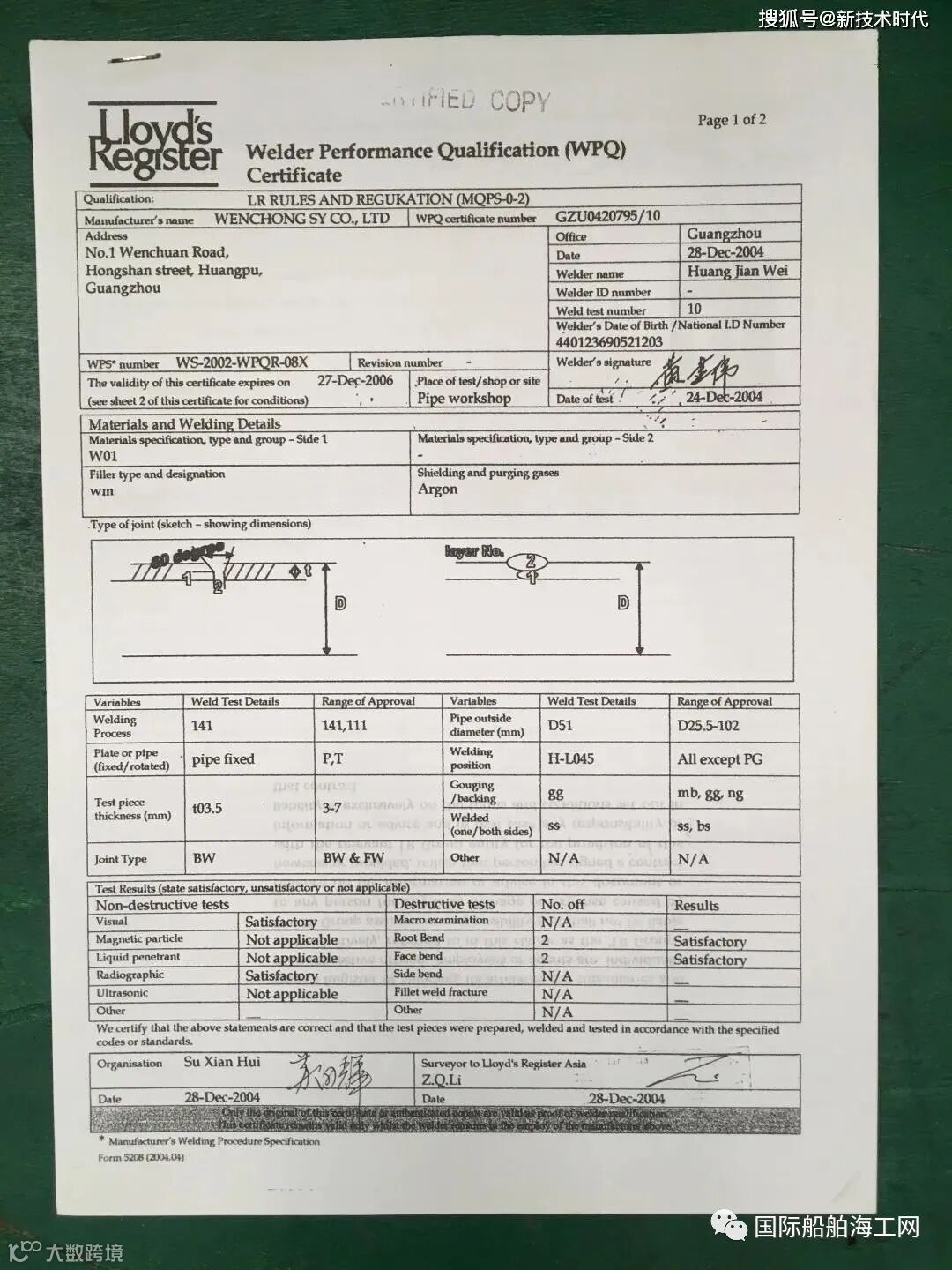 3位老师傅相继退休之后,黄建伟没有辜负师傅的期望,担起了公司焊接领军人物的大旗,先后掌握了CCS、NK、ABS、LR、DNV船级社关于螺旋桨的化学成分、修理温度、修理方法、区域划分等技术,成为全国罕见的获英国劳氏船级社Lioyd’s Register锅炉认证的技术能手和获挪威DNV和美国ABS船级社认可的修理螺旋桨技术顶级能手。