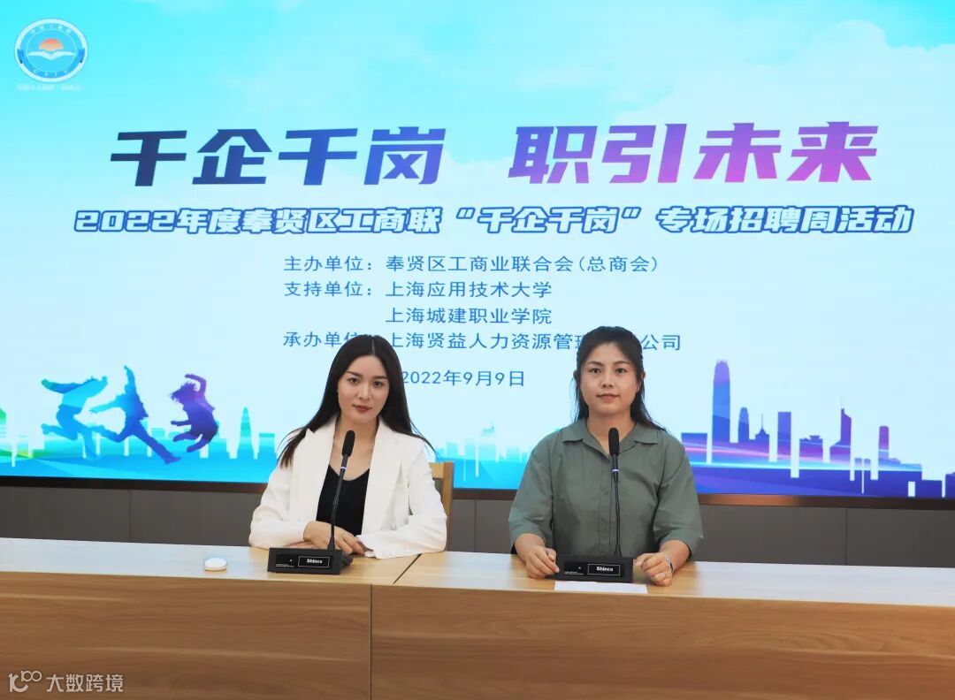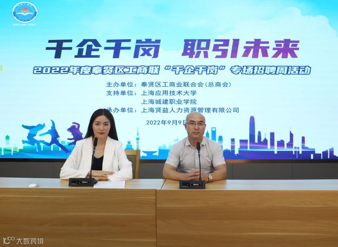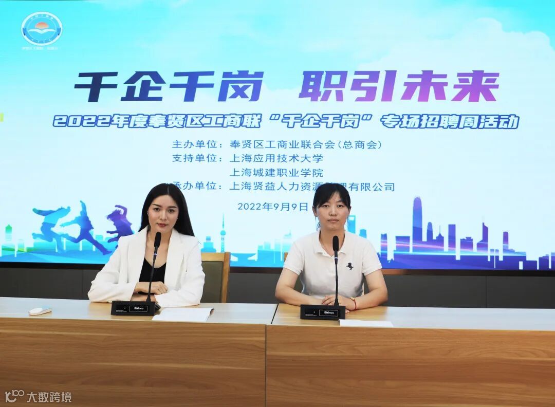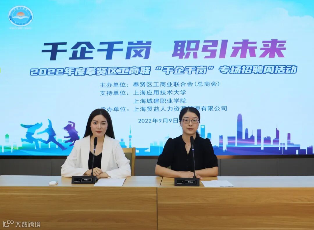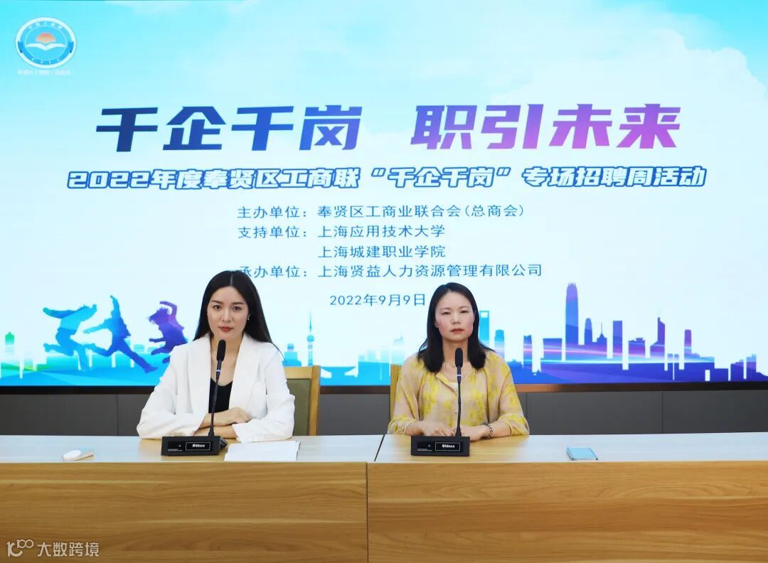9月9日下午14:00,由奉贤区工商业联合会(总商会)、上海应用技术大学、上海城建职业学院、上海贤益人力资源管理有限公司联合举办“千企千岗、职引未来”专场招聘周活动在南上海人力资源产业园正式拉开帷幕。