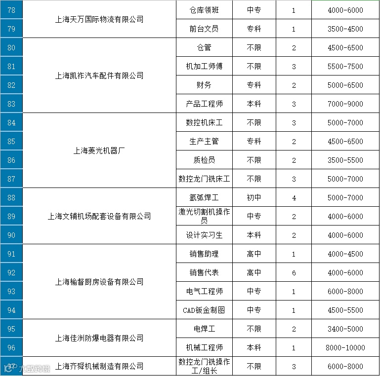 共放出招聘岗位97个
