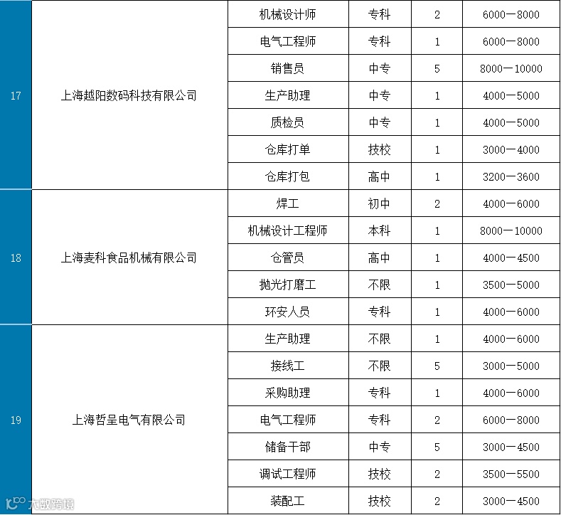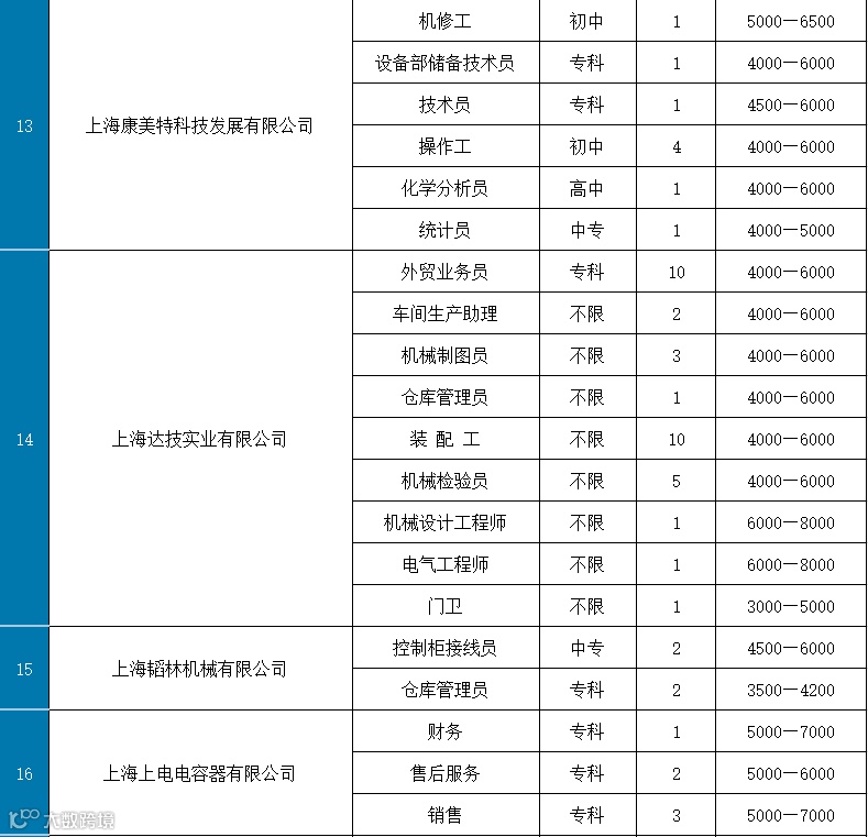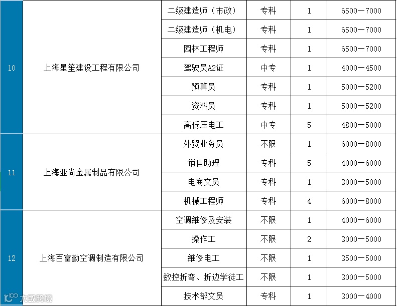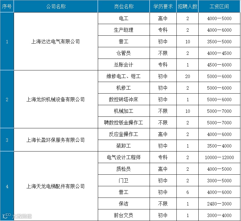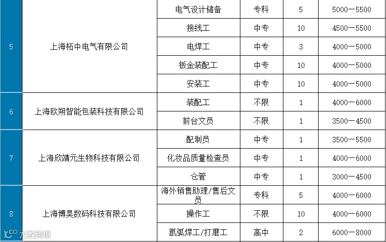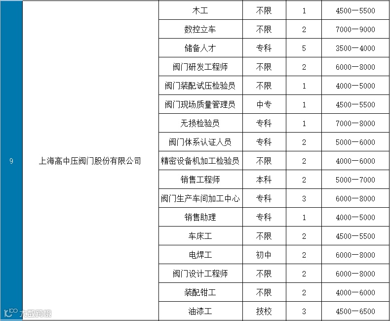 部分岗位表