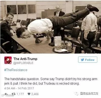 应对特朗普式握手神力,加拿大总理特鲁多也不是吃素的。