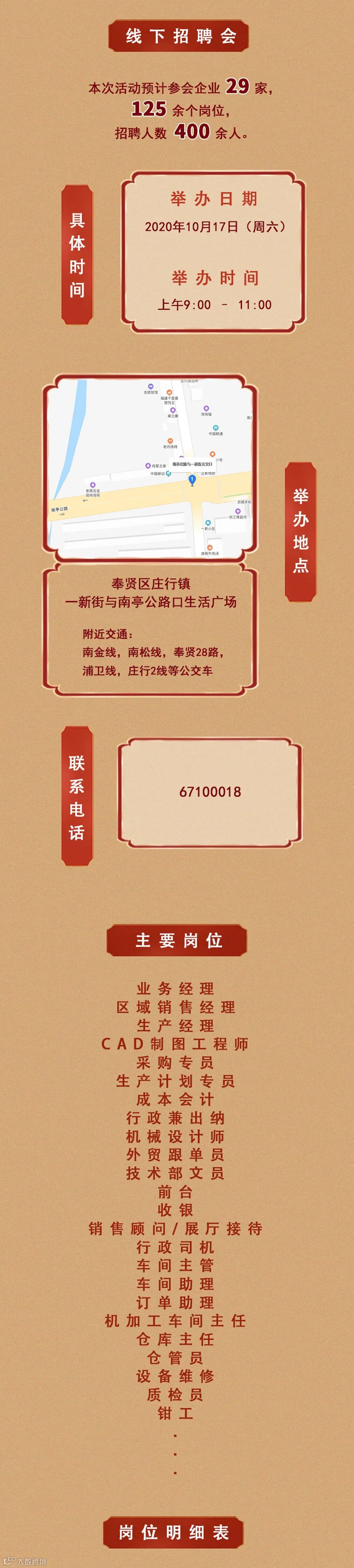 导读:我区将于2020年10月17日上午举办奉贤区“梦圆小康就业券”庄行镇专场招聘会暨高校毕业生招聘活动。