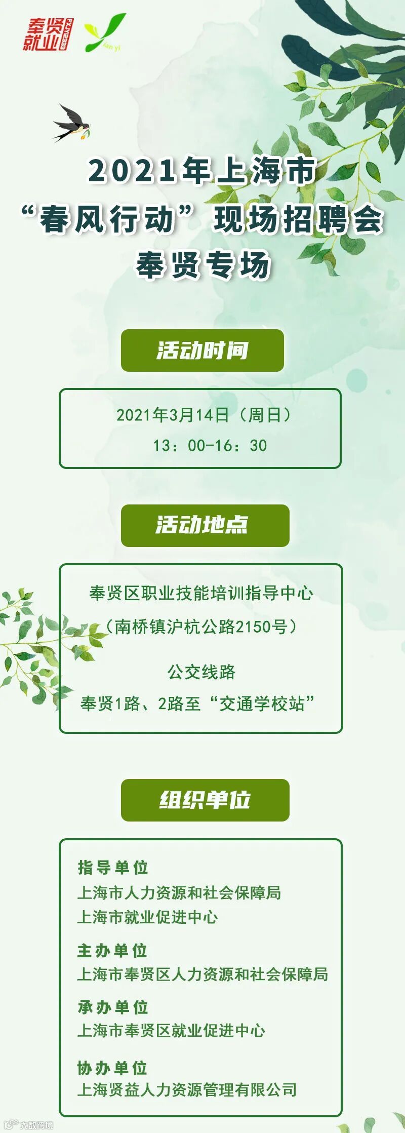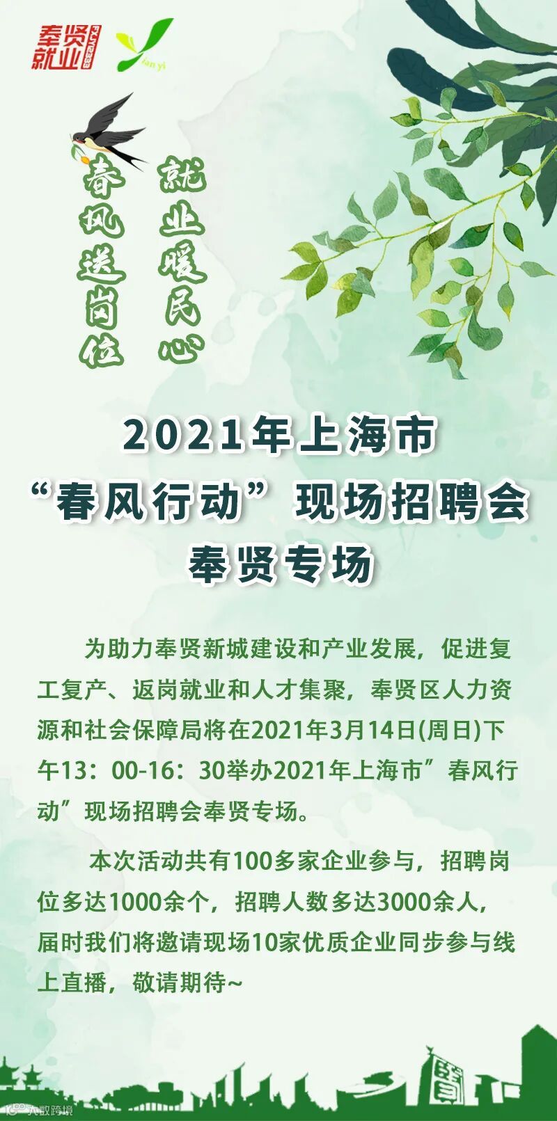“春风送岗位 就业暖民心” | 2021年上海市“春风行动”现场招聘会奉贤专场预告