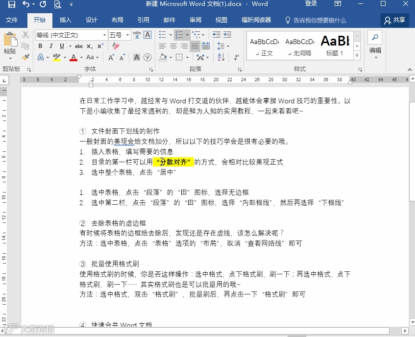 2.表格的第一列可以用“分散对齐”的方式,会显得美观正式;