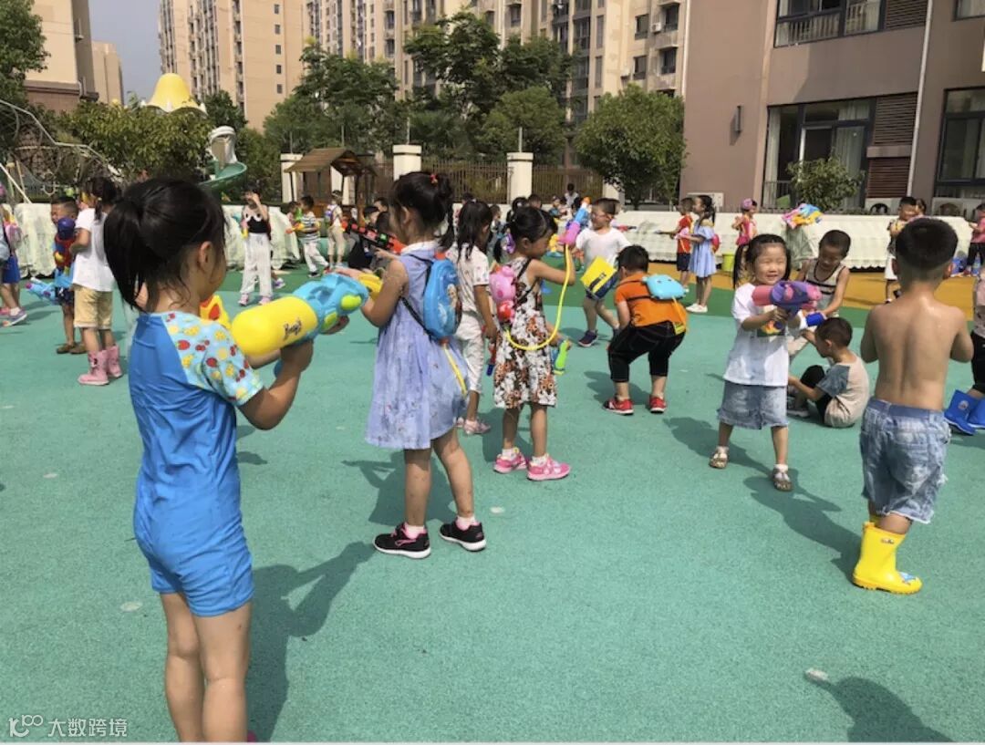 往年幼儿园的开学,难免会有宝宝们哭闹着不肯上学的身影,今年的青苹果幼儿园选择了一场特别的开学典礼,在老师和家长的带领下,以打水仗的形式迎接新学期。今年上大班的王芯妍一早便“全副武装”,手拿小水枪,身背小水桶,虽然是个女孩子,但是打起水仗来,可一点也不输给同龄的男孩子们。对于有些腼腆的吴彦博来说,开学第一天的感想就是,“玩得很开心。”大班中班的孩子们玩得尽兴,新入学的小班宝宝们则在一边羡慕的看着哥哥姐姐们玩耍。“以打水仗的形式拉开新学期的帷幕其实非常受家长们推崇。”范园长介绍,宝宝们在一边玩耍的同时,也潜移默化地学习,中班大班的孩子用玩水的形式庆祝升学,而小班的孩子们也在旁观中减少了入学压力,开学第一节课就在孩子们充满欢乐的嬉戏声中画上句号。