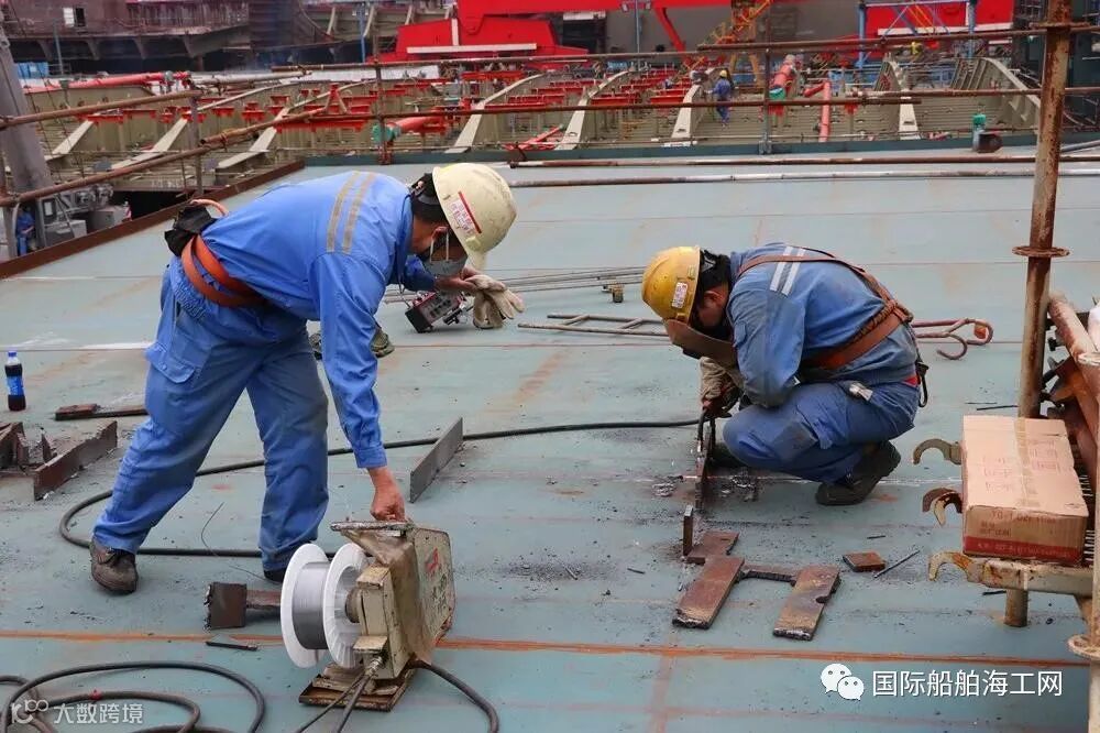据统计,3月2日,在阿船上作业的员工人数为948人,其中搭载二课就有355人。按照望光节点工艺要求,全船3甲以下舱室,都必须焊接密试完。他们正按照这个要求,稳步推进。除了船体搭载之外,机、电、居装各专业课同样也在齐头并进。