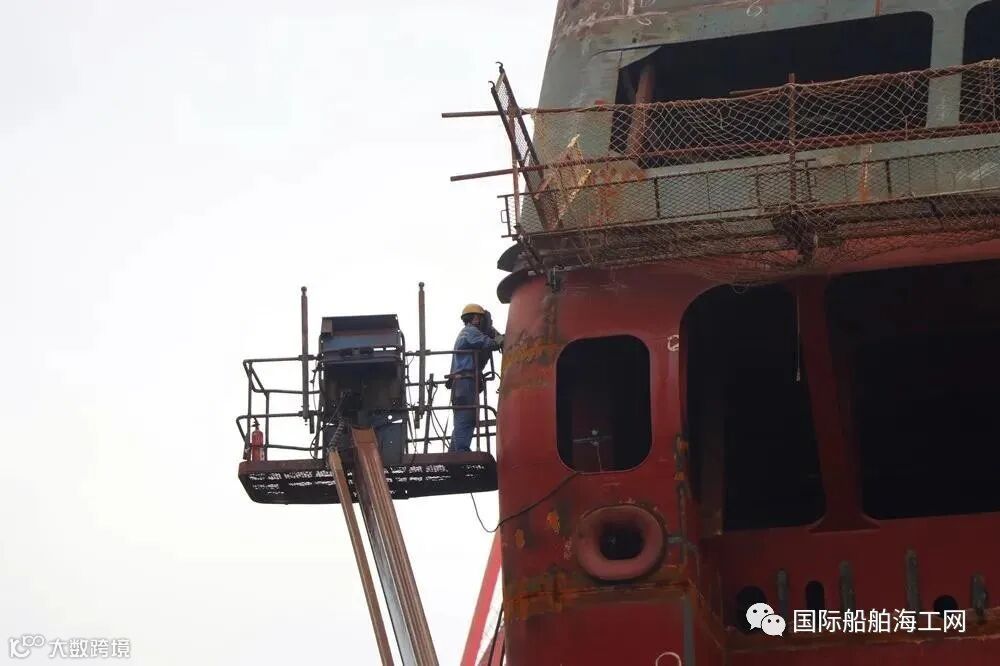 这个总段叫XE037,是阿船艉部上建的最后一个总段,也是望光前必须要搭载完的一个总段。