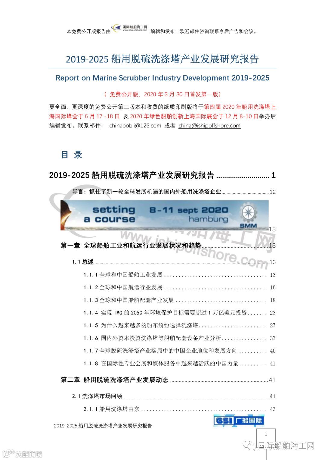 国内外许多行业人士,在了解到将于2020年3月30日免费公开发布电子版《2019-2025 船用脱硫洗涤塔产业发展研究报告》后,纷纷建议能否提供英文版提纲和提要,同时增加新的广告项目。国际船舶海工网积极回应,准备考虑增加报告的英文版提纲和提要,同时增加新的广告项目供选择参考。非常期待有预算公司提供赞助和广告,以便我们不断改进和提高报告质量,更好地为产业服务。新的广告项目机会如下: