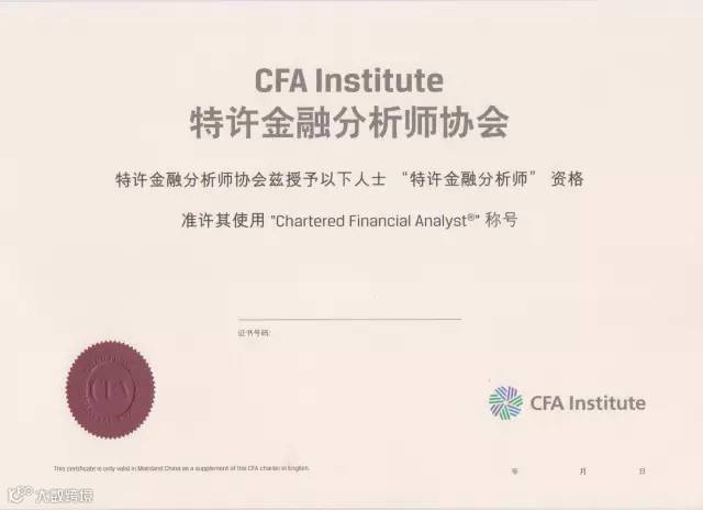 4、特许金融分析师证书