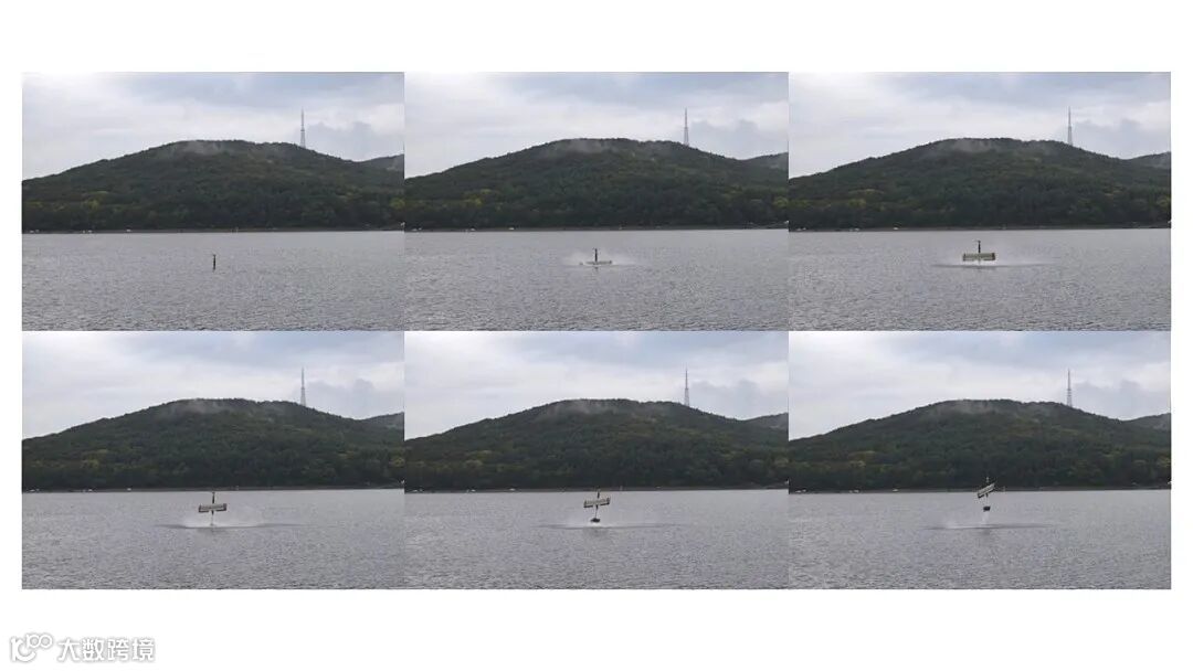 波光粼粼的水面上,两架“小飞机”先后潜入水下,用几十秒的时间抵达指定位置,完成任务后,以优美的转身轻盈飞出水面。