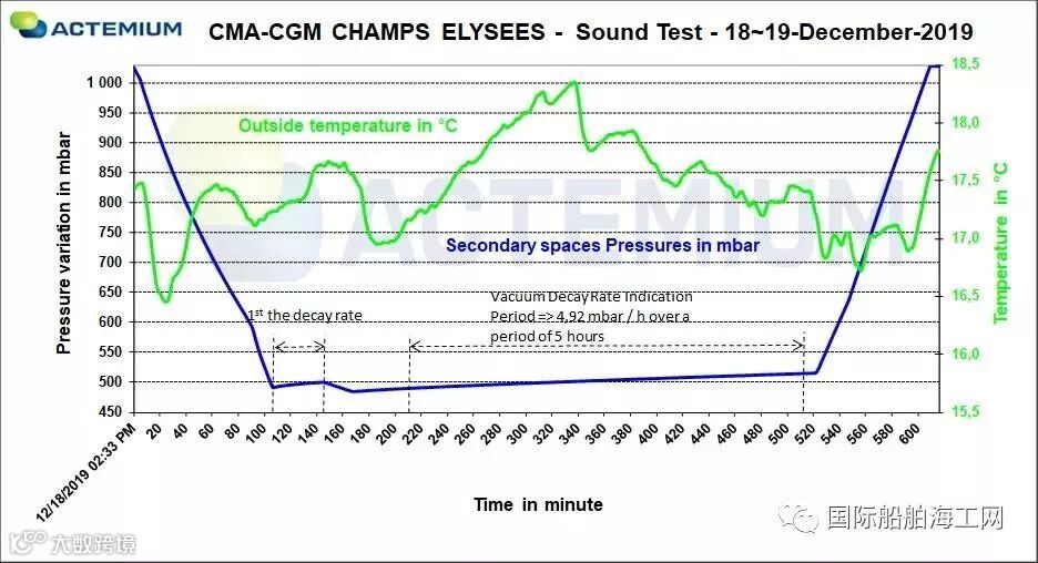早在几周前,围护系统项目组对试验流程、现场管控要求、前期准备工作、安全事项进行交底和部署。在各生产、密配部门大力支持下,最终为试验环境创造了有利条件。一切准备工作就绪后,当晚18:35分正式开始对次屏蔽空间抽气,2小时后,次屏蔽空间达到规定压力后保压。22:00舱外检查结束,再次抽气至规定压力后保压,30分钟后传来消息——压力稳定!可正式开始舱内试验。临近午夜,舱内再次传来喜讯——次屏蔽层无漏点!凌晨4点,最终确定次屏蔽层气压每小时上升4.7mbar,这一数字意味着次绝缘层空间整体密性达到“优秀“级别。