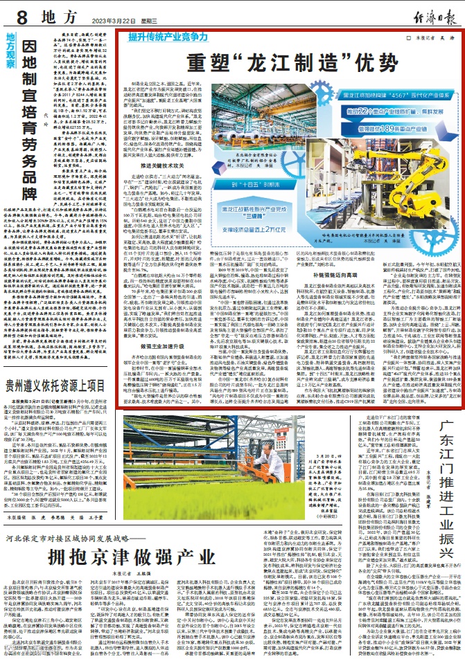制造业是立国之本、强国之基。近年来,黑龙江省把产业作为振兴发展突破口,在推动经济高质量发展和现代化强省建设中跑出产业振兴“加速度”,重振老工业基地“大国重器”的雄风。