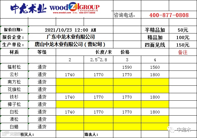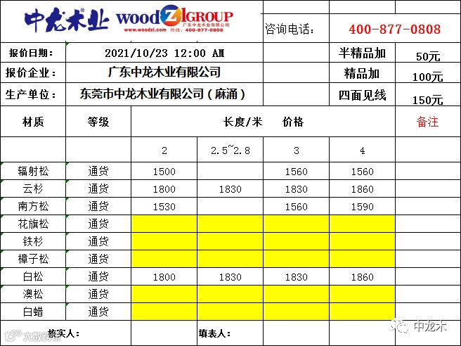 导读:[中龙木]10/12市场指导价格 如果不星标公众号,将无法准时收到报价。