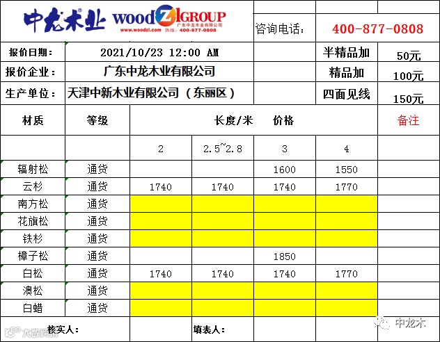 海外林场,一手货源!欢迎订阅【中龙木】市场指导价格,专业生产建筑木方,拥有广东,天津,河北,山东,广西,海南,湖南,福建,重庆等九大区域加工基地!