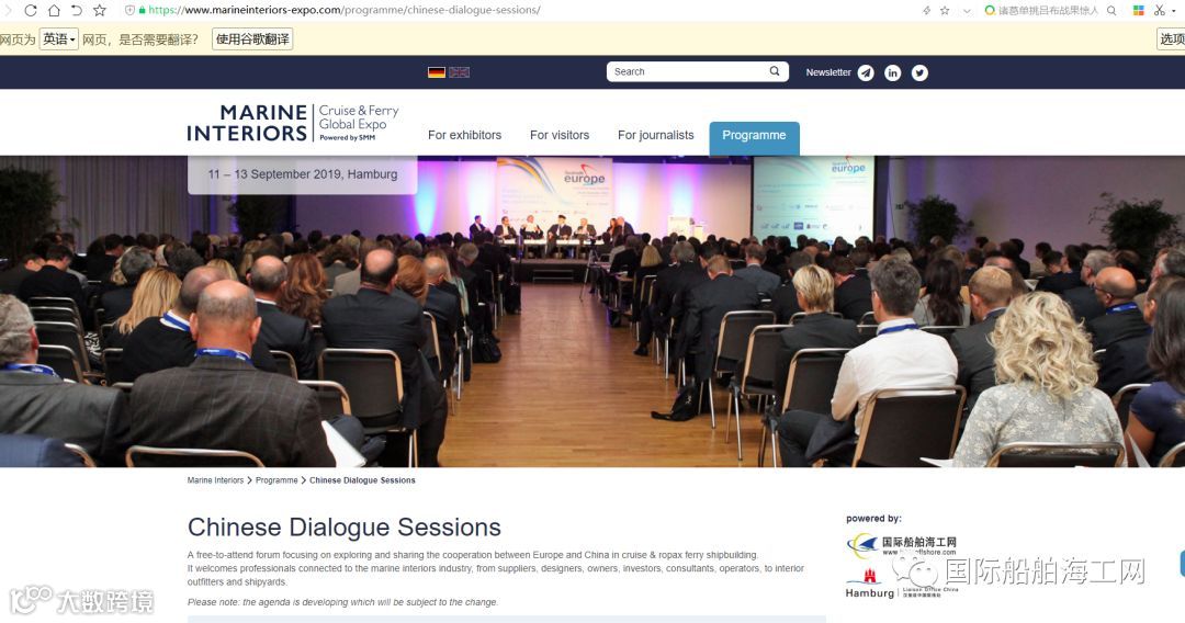 近日,被称为世界造船界麦加、位于德国汉堡的全球最大的造船海事展览集团SMM,在官方网站上发布了中国邮轮客滚船免费相关论坛日程的初稿。见链接: