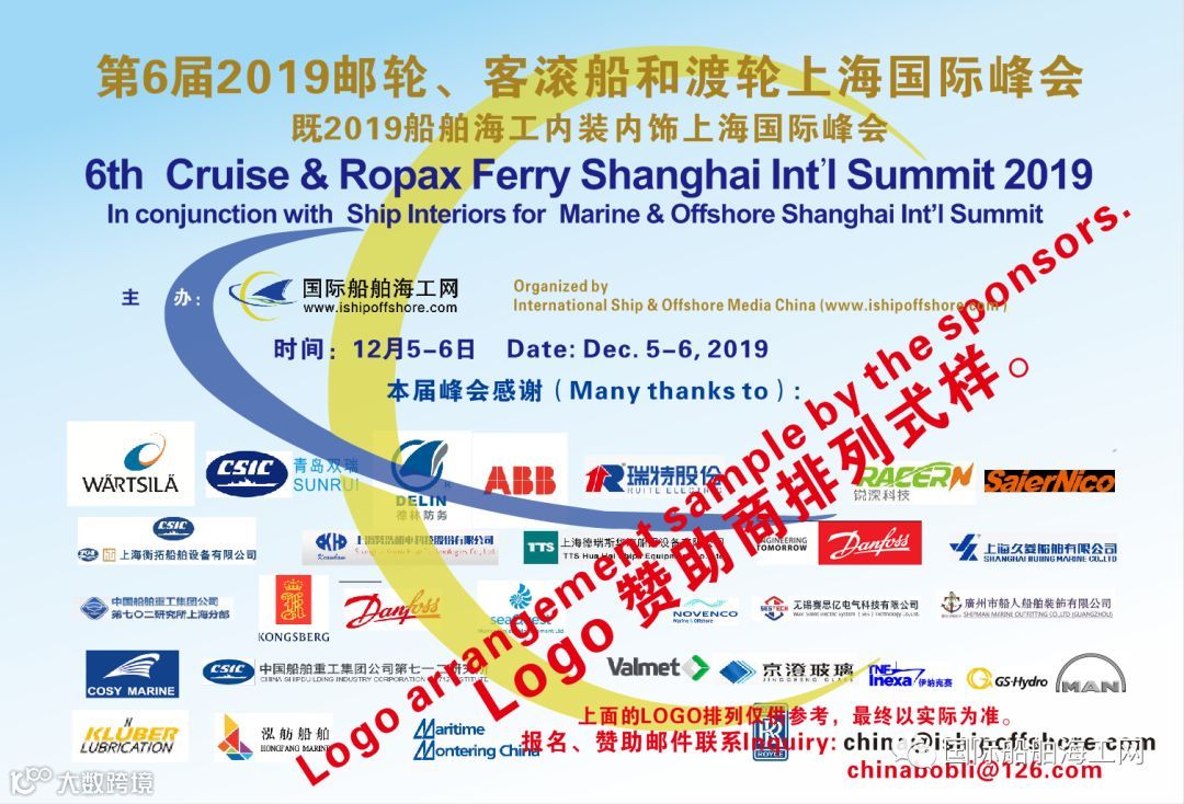 8月30日前付款6000元人民币以上,可免费得将于9月10日在德国汉堡欧洲邮轮展览和德国邮轮内装内饰展会上发布赠送的“中国豪华邮轮客滚船建造船厂分布图将发布”免费广告一个,大小和位置以金额和付款顺序决定。