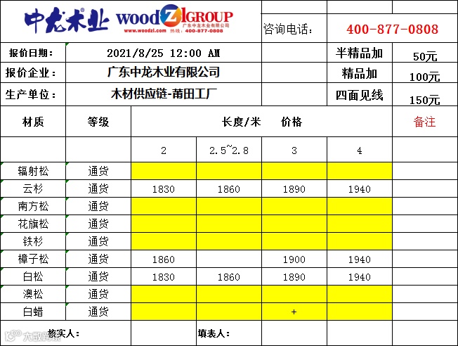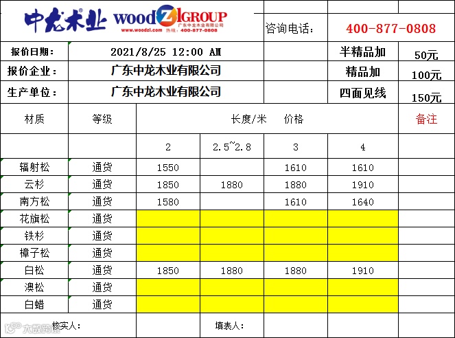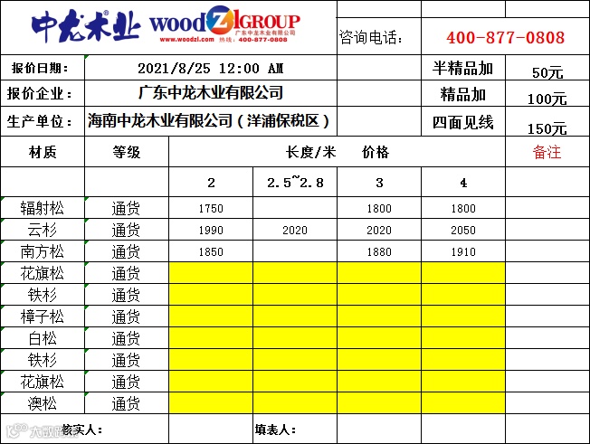 海外林场,一手货源!欢迎订阅【中龙木】市场指导价格,专业生产建筑木方,拥有广东,天津,河北,山东,广西,海南,湖南,福建,重庆等九大区域加工基地!
