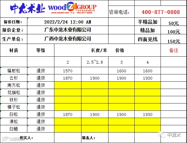 海外林场,一手货源!欢迎订阅【中龙木】市场指导价格,专业生产建筑木方,拥有广东,天津,河北,山东,广西,海南,湖南,福建,重庆等九大区域加工基地!
