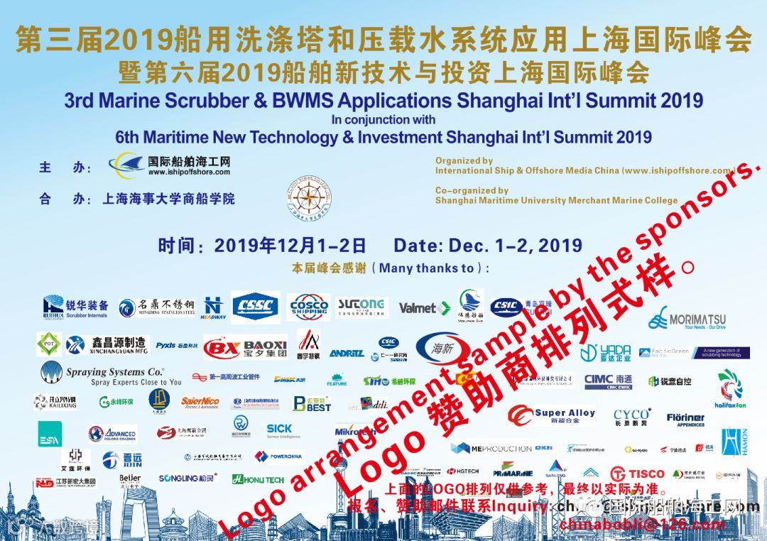 更大规模、更高规格的正在积极筹备”2019第三届船用洗涤塔和压载水系统上海峰会””和同期的“第六届2019年船舶新技术与投资上海国际峰会”,定于2019年12月1-2日将在上海市中心继续举办 。预计将有超过300多位来自来自中国、英国、美国、加拿大、德国、丹麦、挪威、瑞典、日本、法国、荷兰、比利时、芬兰、新加坡、马来西亚、韩国等国的船东、船厂、洗涤塔厂商、压载水厂商、配套厂家、设计和投资单位等报名参加,将汇聚上海,在12月3-6日的上海国际海事展前2天,交流、探讨和分享全球限硫令下船舶脱硫洗涤塔和压载水系统等的机会、挑战、合作等。
