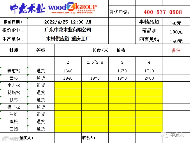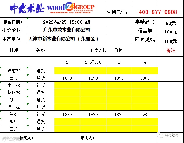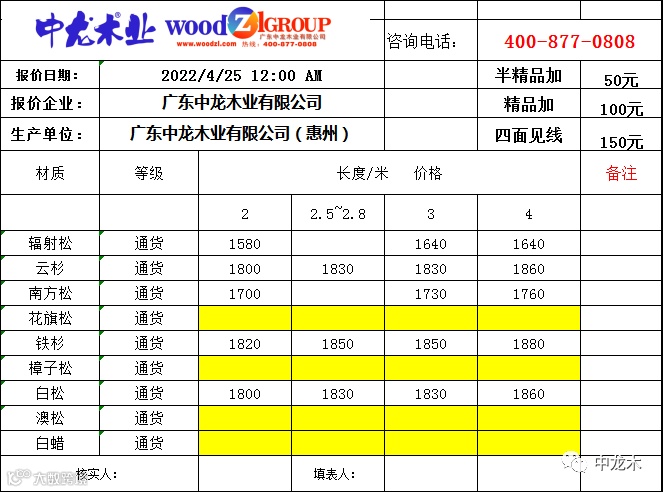 海外林场,一手货源!欢迎订阅【中龙木】市场指导价格,专业生产建筑木方,拥有广东,天津,河北,山东,广西,海南,湖南,福建,重庆等九大区域加工基地!