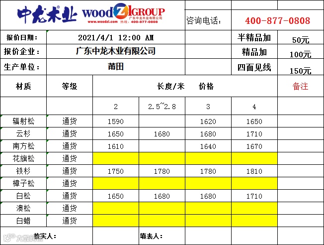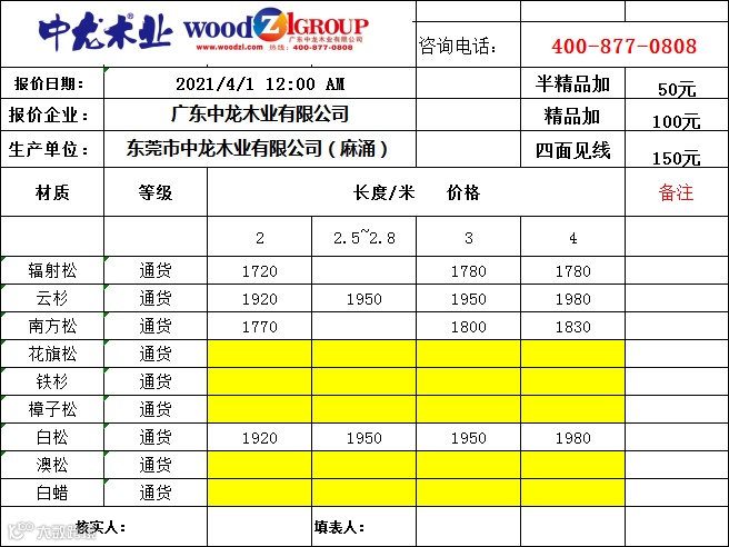 海外林场,一手货源!欢迎订阅【中龙木】市场指导价格,专业生产建筑木方,拥有广东,天津,河北,山东,广西,海南,湖南,福建,重庆等九大区域加工基地!