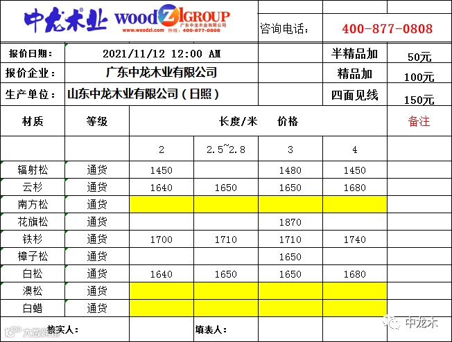 导读:[中龙木]10/12市场指导价格 如果不星标公众号,将无法准时收到报价。
