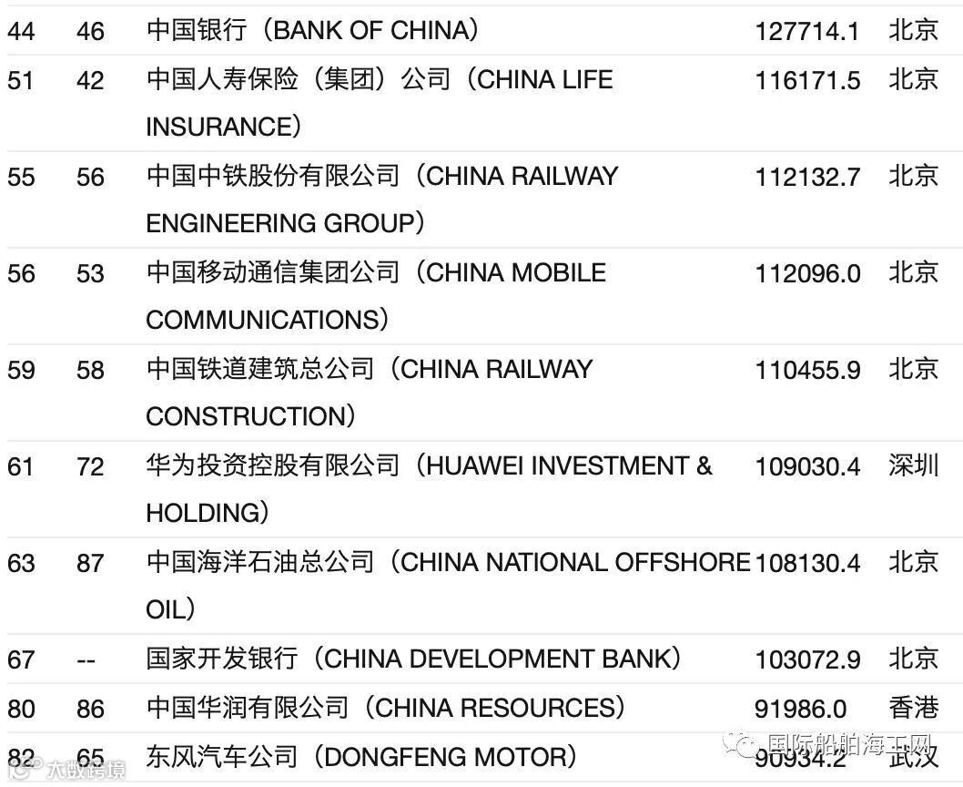 上榜的中国公司首次超过美国