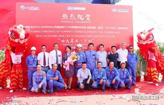 7月23日上午,由中船集团旗下广船国际为中国船舶(香港)航运租赁有限公司与丹麦Hafnia Tankers组建的合资公司Vista Shipping建造的7.5万吨化学品/成品油船3号船隆重命名。同日下午,该船签字交船。