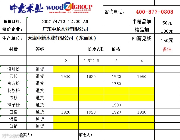 海外林场,一手货源!欢迎订阅【中龙木】市场指导价格,专业生产建筑木方,拥有广东,天津,河北,山东,广西,海南,湖南,福建,重庆等九大区域加工基地!