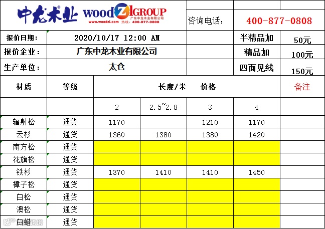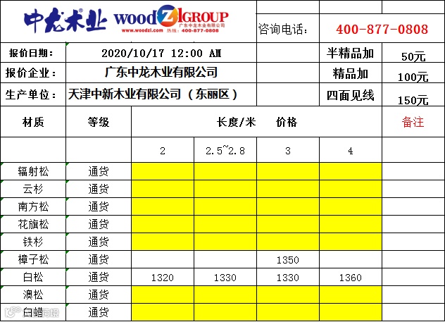 海外林场,一手货源!欢迎订阅【中龙木】市场指导价格,专业生产建筑木方,拥有广东,天津,河北,山东,广西,海南,湖南,福建,重庆等九大区域加工基地!