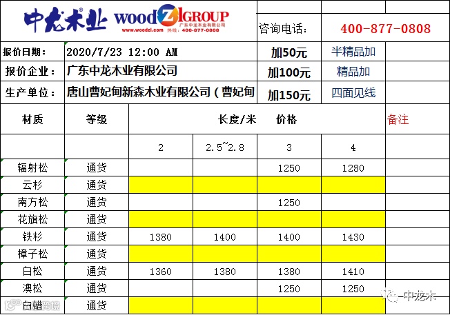 海外林场,一手货源!欢迎订阅【中龙木】市场指导价格,专业生产建筑木方,拥有广东,天津,河北,山东,广西,海南,湖南,福建,重庆等九大区域加工基地!