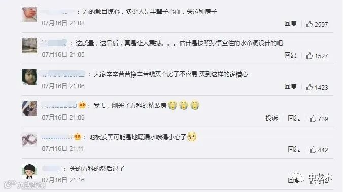 7月16日,对央视3·15晚会报道了万科尚城精装房漏成水帘洞的情况,万科回应:深表歉意。
